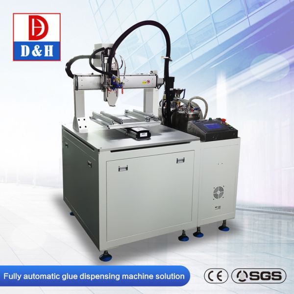 Automatic glue mixing and dispenser machine is mainly used for a two-component glue( Epoxy/ Silicone/PU,etc adhesive), automatic metering and mixing the ratio of glue. The glue are stored in two barrels separately, according the glue weight ratio and volume demand automatic metering by two sets of precision pump, supply to a mixing device fully mixing, and then potting/dispensing the desired products.